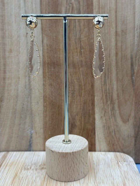 Goudkleurige stainless steel oorstekers met een mooie hanger van kristal.